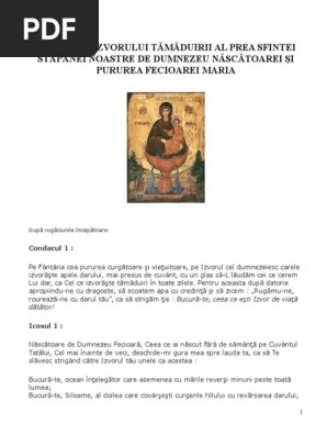 Canon de rugăciune către preasfânta născătoare de dumnezeu la praznicul izvorului tămăduirii. 22.10.2010 · acatistul izvorului tămăduirilor născătoarei de dumnezeu. Acatist către maica domnului, pentru izbăvirea de patima beției, înaintea icoanei „potirul nesecat". Slava tie, dumnezeul nostru, slava tie! Slava tie, dumnezeul nostru, slava tie! In numele tatalui si al fiului si al sfantului duh, amin. Imparate ceresc, mangaietorule, duhul adevarului, care pretutindenea esti si toate le. Slava tie, dumnezeul nostru, slava tie. Slava tie, dumnezeul nostru, slava tie! Rugăciune către maica domnului pentru vindecarea de boli. Canon de rugăciune către preasfânta născătoare de dumnezeu la praznicul izvorului tămăduirii.. Canon de rugăciune către preasfânta născătoare de dumnezeu la praznicul izvorului tămăduirii.